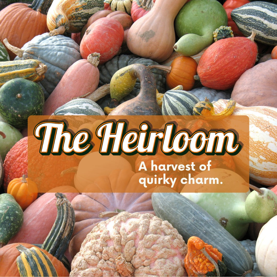 The Heirloom features a playful, one-of-a-kind mix of uniquely shaped and richly colored heirloom pumpkins - no two are exactly alike. From dusty greens to muted oranges and unexpected textures, this collection is full of personality and charm. Perfect for porches that want something a little different, a little wobbly, and totally wonderful!
