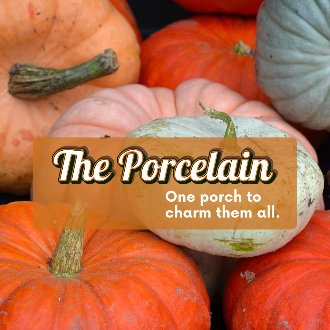 The Porcelain is fall at it's most enchanting. This pastel-inspired pumpkin collection features a delicate mix of pale blues, blush tones, soft creams, and muted greens, offering a fresh, airy, alternative to traditional autumn decor. Light, whimsical, and impossibly pretty, it's the perfect choice for porches that love to stand out -gently.