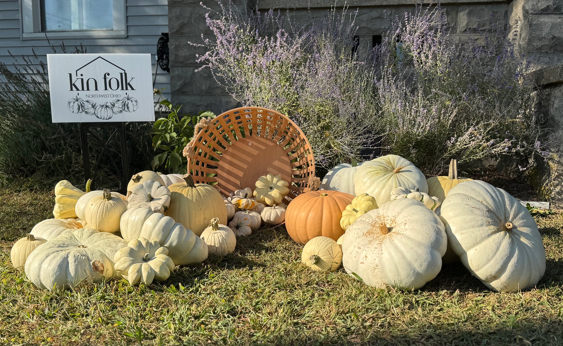 Go all out this this deluxe kit: 4 extra large white pumpkins, 6 large white pumpkins, 12 medium white pumpkins, 24 white or cream-colored specialty pumpkins, 12 white pie pumpkins, and an assortment of white mini-pumpkins, and 2 hay bales. It’s the ultimate display that'll wow the neighborhood!